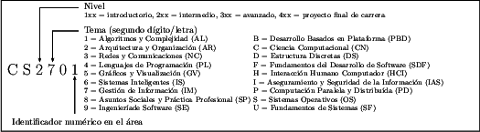 Los cursos se encuentran codificados bajo el esquema que se muestra en la Figura 3.1: